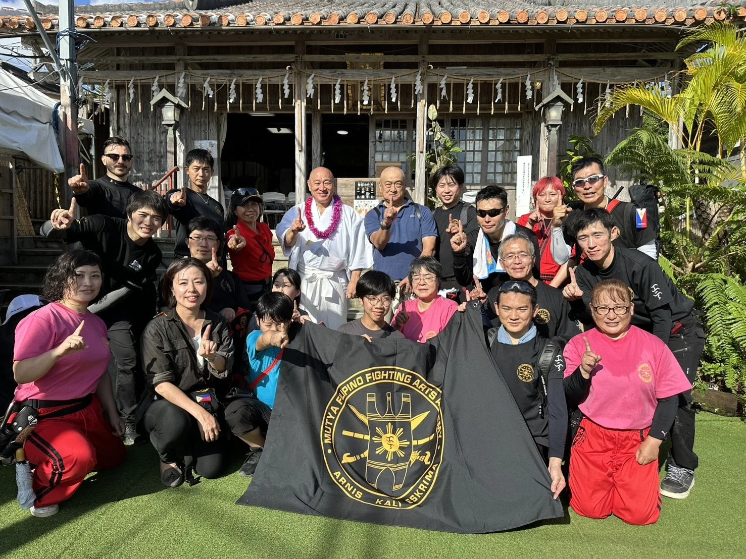 With Okinawa’s clear blue skies above, Okinogu brimming with Okinawan culture, and the main shrine filled with dignified, refreshing sacred energy, we played Filipino music at full volume and performed Kali.